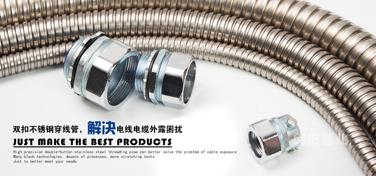 除此之外,公司還致力于金屬軟管接頭,普利卡管,普利卡接頭,不銹鋼穿線管的銷售。公司本著品種多、質量優、服務好的宗旨,不斷開發、創新產品,以滿足日益發展的市場需要。產品主要包括:金屬軟管接頭 ,橋架接頭,塑料軟管接頭,AD接頭,不銹鋼接頭,普利卡接頭,包塑金屬軟管,不銹鋼軟管,不銹鋼編織軟管,普利卡軟管,尼龍軟管,塑料波紋管,尼龍拖鏈等機床配件。產品廣泛應用于建筑、機床、鐵路、車輛、化工、汽車、監控、建筑裝修、建筑裝飾、建材、裝修裝飾等行業。上海閔彬管業有限公司高質量包塑管在實際使用中多家工程單位的認可、使用與推廣。